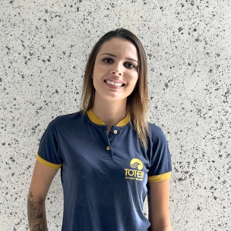 Adriele, desde a fundação da Totem, é braço direito das sócias e líder do time de atendimento, transmitindo os valores da empresa com foco em segurança, transparência, agilidade e rapidez.